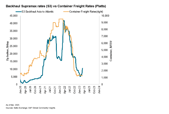 As we predicted, with weaker influence from the container sector to minor trade and backhaul rates of the smaller-geared bulker market, the historical earning spread of Panamax and Supramax returned to normal. Furthermore, with significant drop in container freight and slower container trade demand growth in response to high inflation rate and endemic consumer pattern along with reduced congestion, decontainerized trend has been reversed and large part of container spillover-related minor bulk cargo have already returned to container box.